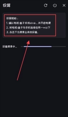 4、投屏功能需要将手机和投屏设备设置在同一wifi下,等待搜索找到设备之后连接播放即可