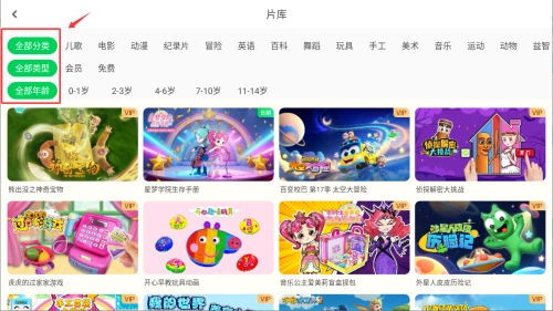 3、进入片库可按类别、类型及年龄筛选作品。