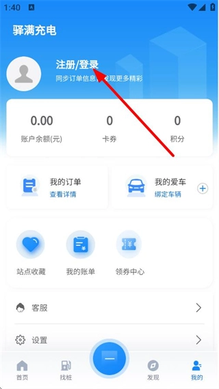 2、在个人页面,点击注册/登录,进入登录页面。