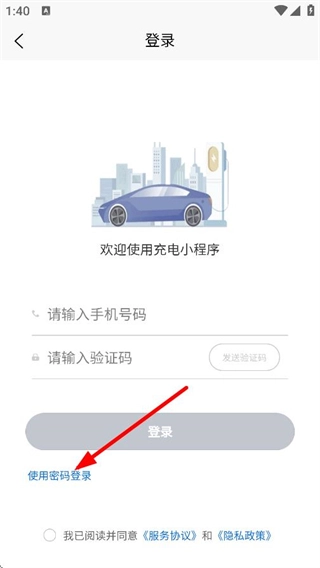 3、在登录页面,点击使用密码登录,切换到密码登录模式。
