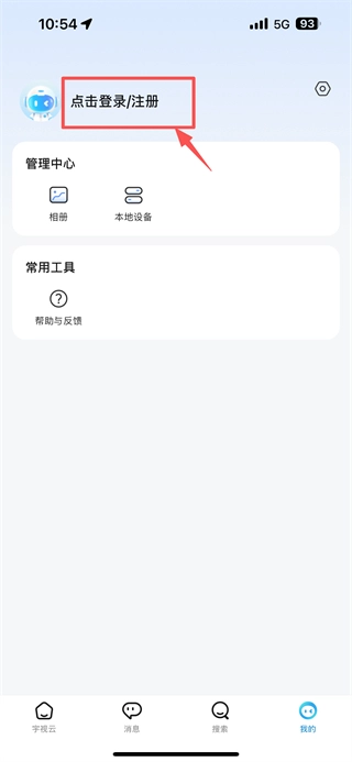 2、在个人中心,点击点击登录/注册选项,进入登录页面。