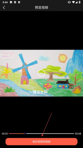 4、在预览视频界面,点击【保存视频到相册】,即可完成视频添加水印操作。