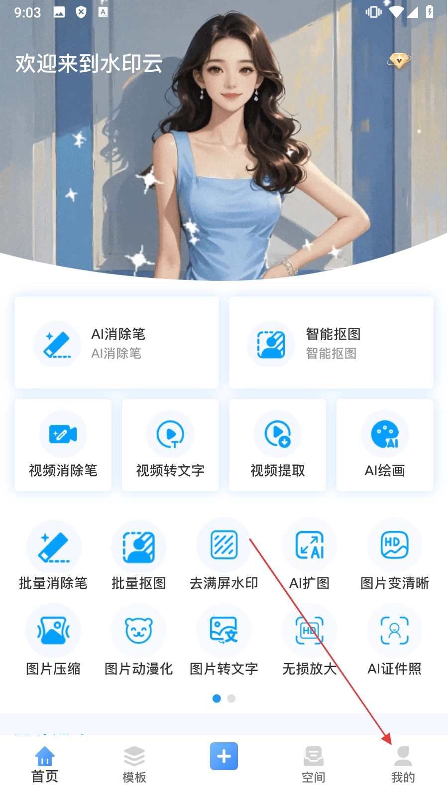 1、在水印云首页,点击【我的】,即可进入个人界面。