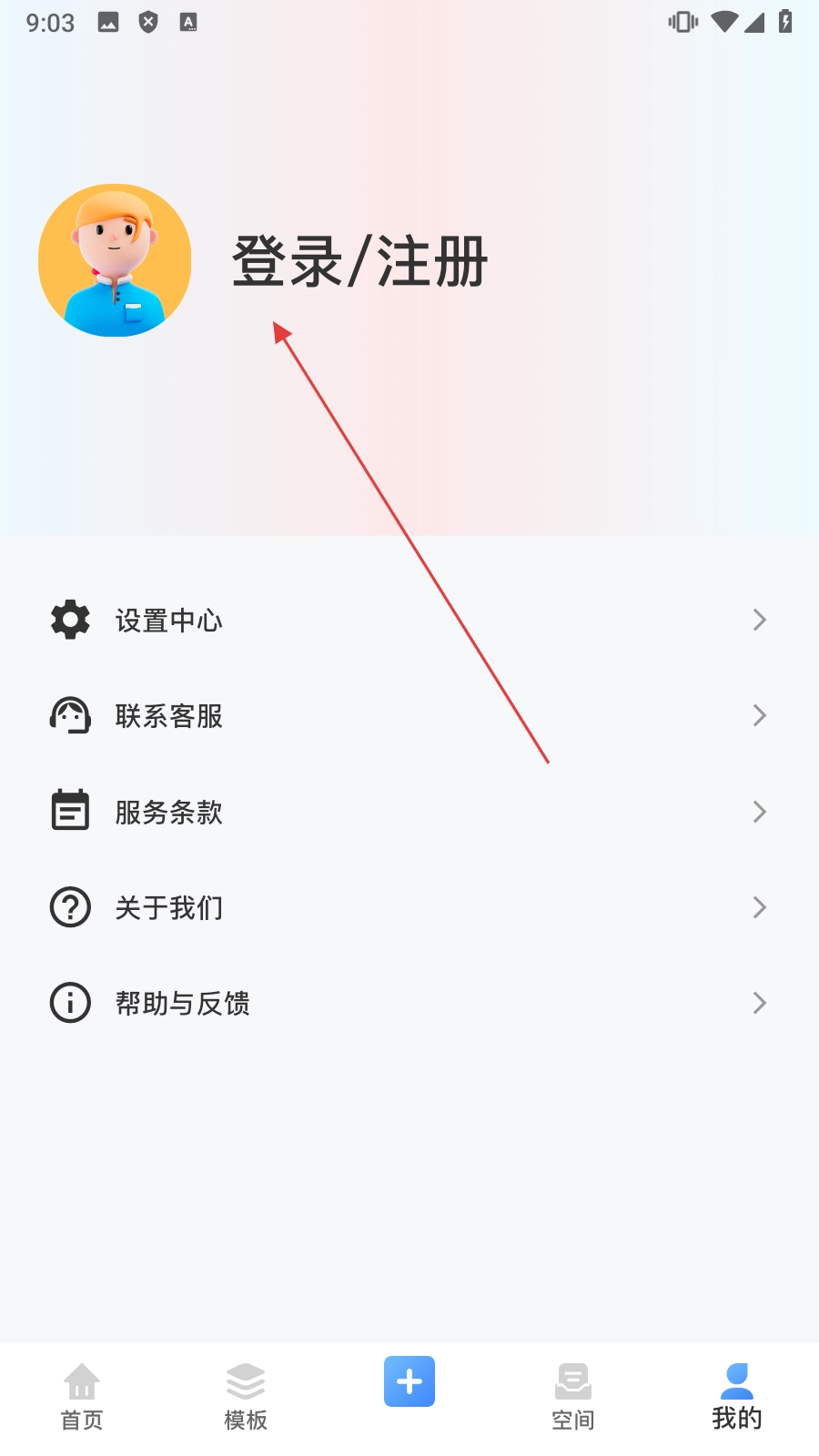 2、进入个人界面后点击【登录/注册】,进入登录选择界面,选择登录方式。