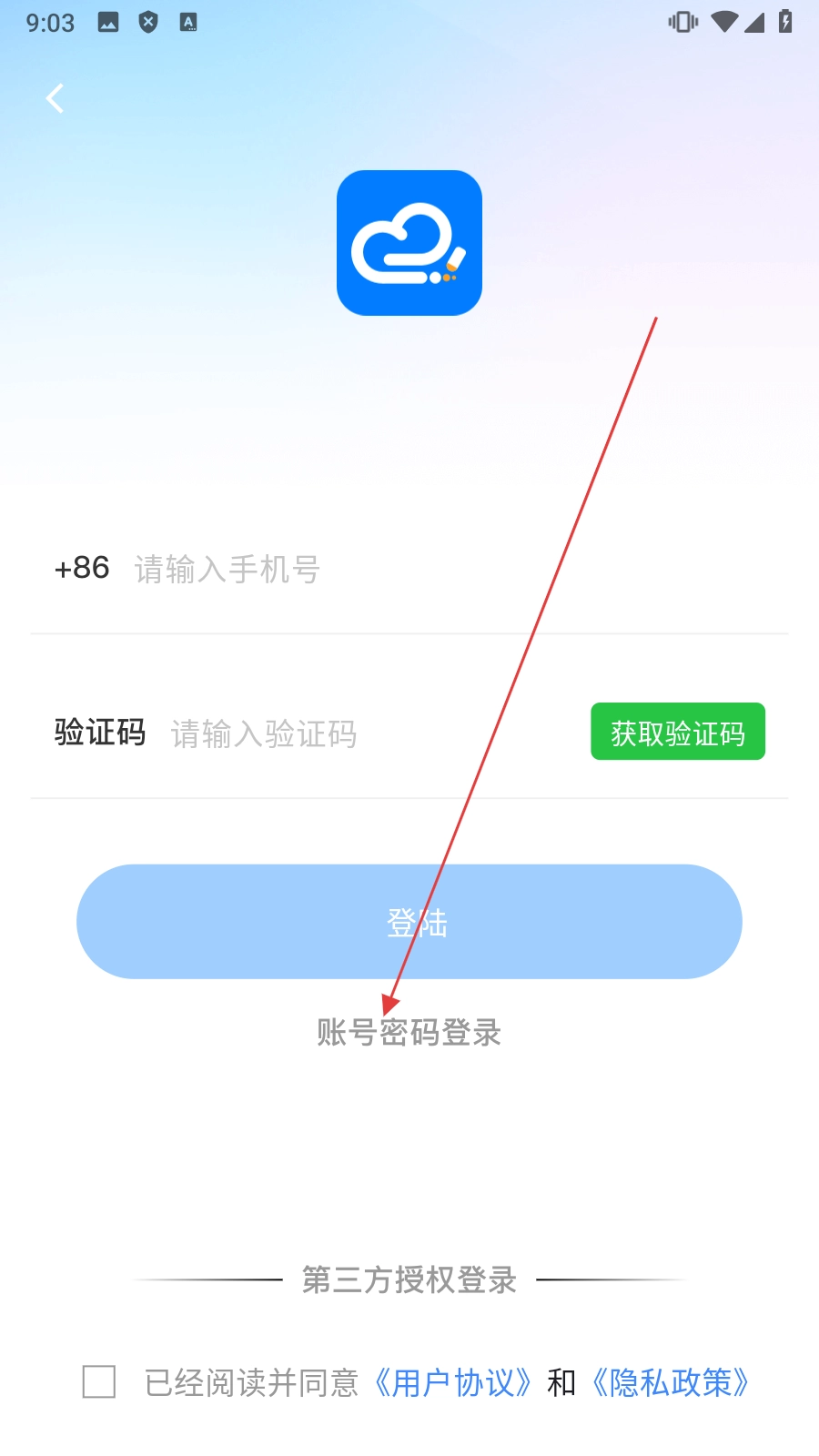 3、在登录选择界面,点击【账号密码登录】,进入账号密码登录界面。