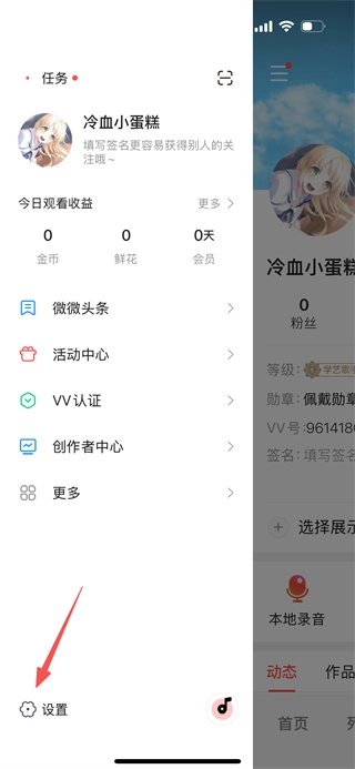 3、在侧边栏菜单中,点击设置选项,进入设置页面。