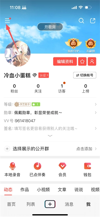 2、在个人页面,点击左上角菜单图标,展开侧边栏菜单。