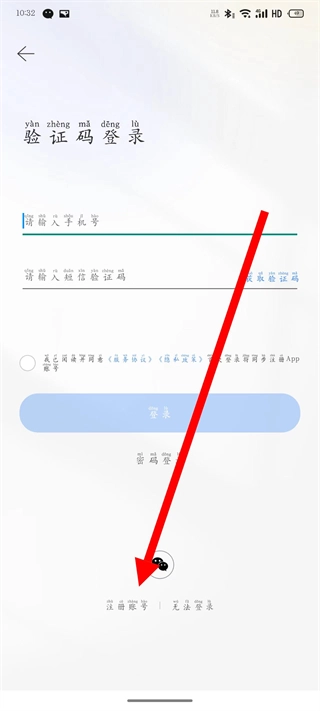 3、在登录页面,点击注册账号,进入注册账号页面。