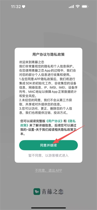 1. 于用户协议与隐私政策弹窗处,点击同意,随后进入登录注册页面。