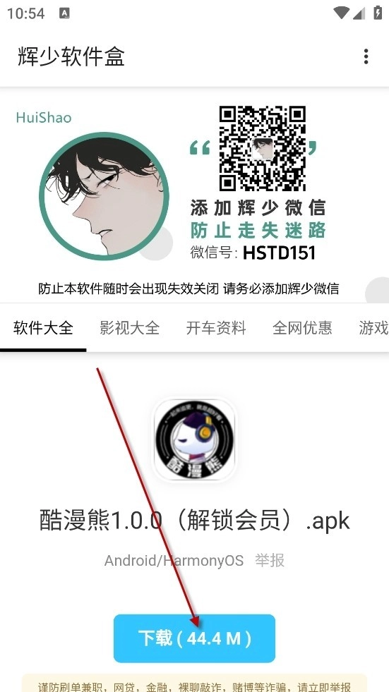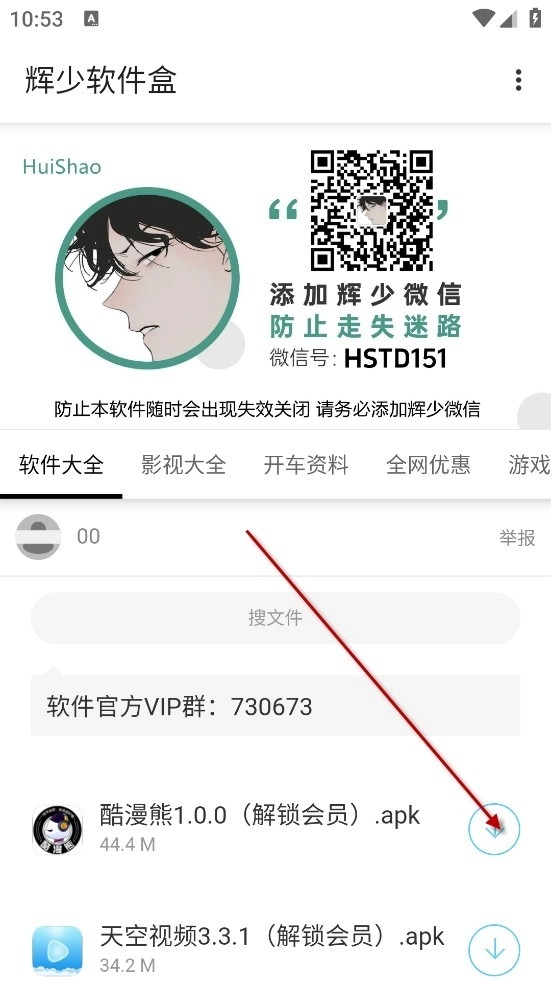 2、找到你想要的软件,点击箭头所指之处,例如灵宝小编选择的是酷漫熊1.0.0解锁会员版。